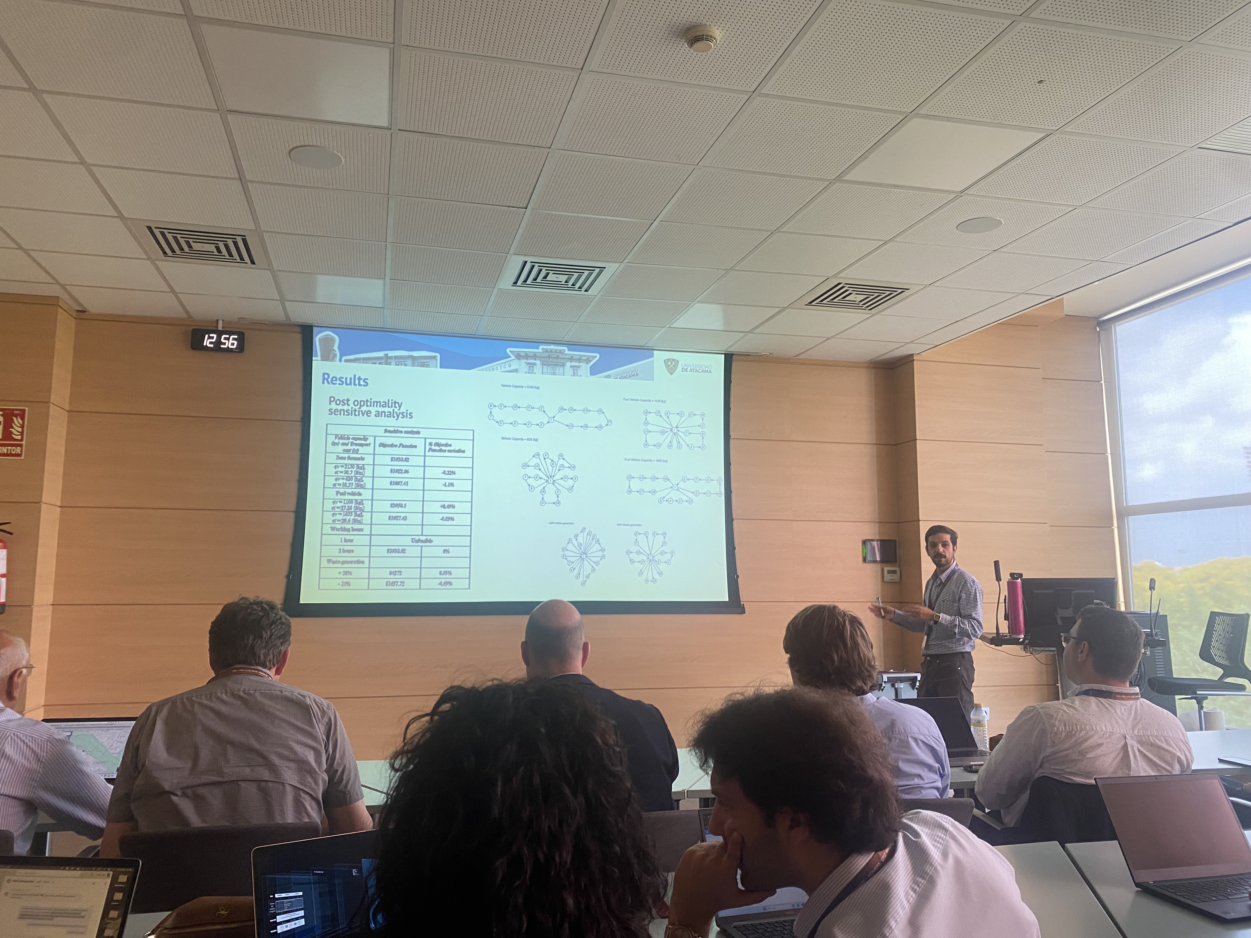 La ponencia del académico se tituló «Capacitated vehicle routing model with time limit for waste collection and recycling in a university campus», es decir, “Modelo de ruteo de vehículos capacitados con límite de tiempo para recolección y reciclaje de residuos en un campus universitario”.