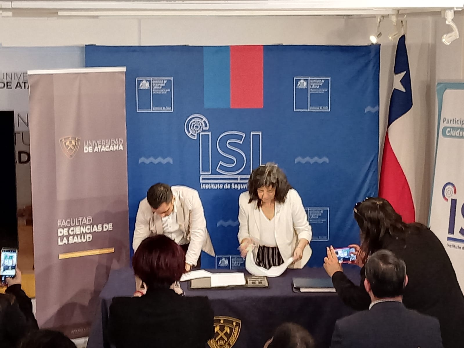 La Directora Nacional del ISL Sra. Aida Chacón señaló que esta instancia de colaboración con la UDA es de gran importancia para desarrollar actividades conjuntas dirigidas a poblaciones de trabajadores desprotegidos del seguro laboral de la ley 16.744 como es el caso de los pescadores y buzos  artesanales particularmente de la región de Atacama.