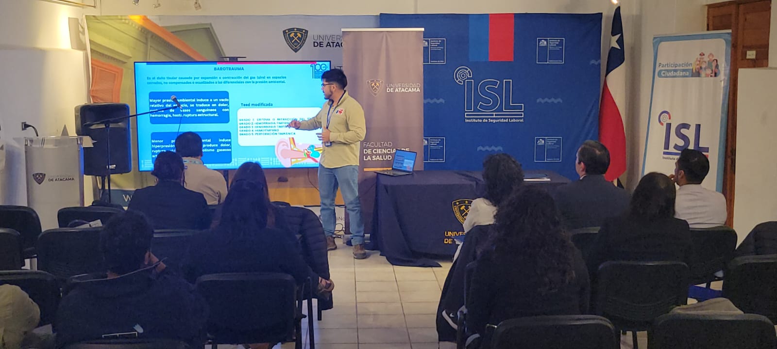 En el Centro Cultural de la Universidad de Atacama en la comuna de Caldera, este miércoles 20 de noviembre, tuvo lugar el Seminario de Seguridad y Salud en el Trabajo para pescadores y buzos. El seminario fue la instancia para la firma de un convenio de colaboración entre la UDA y el ISL que abarcará temas de formación, capacitación, asistencia técnica e investigación.