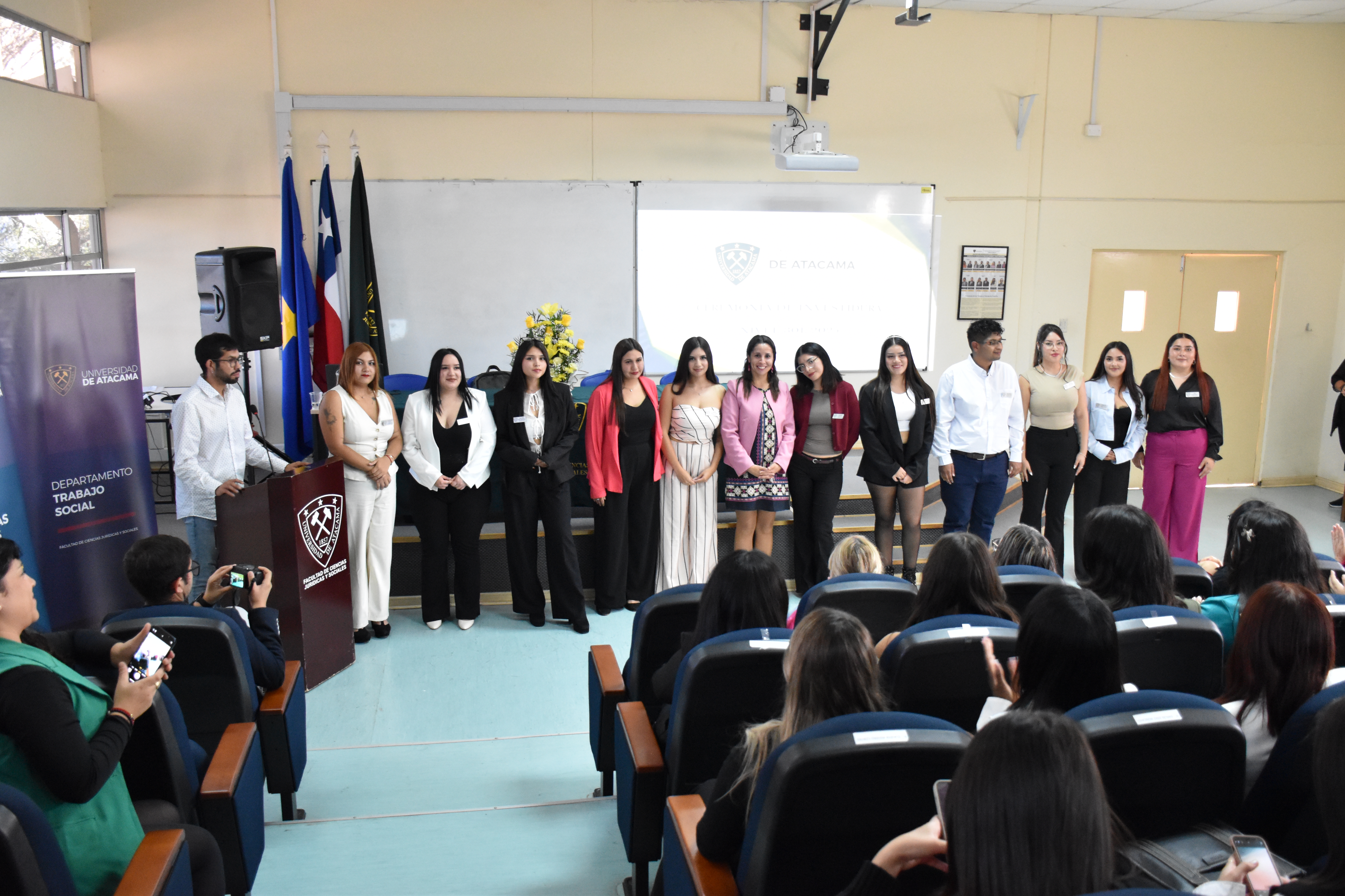 Este emotivo acto simbólico contó con la presencia del Decano Rodrigo Cardozo, la Directora del Departamento de Trabajo Social Ana Castillo Leyton, además de otros académicos claves en el proceso formativo; además de las amistades y familiares de estos estudiantes.