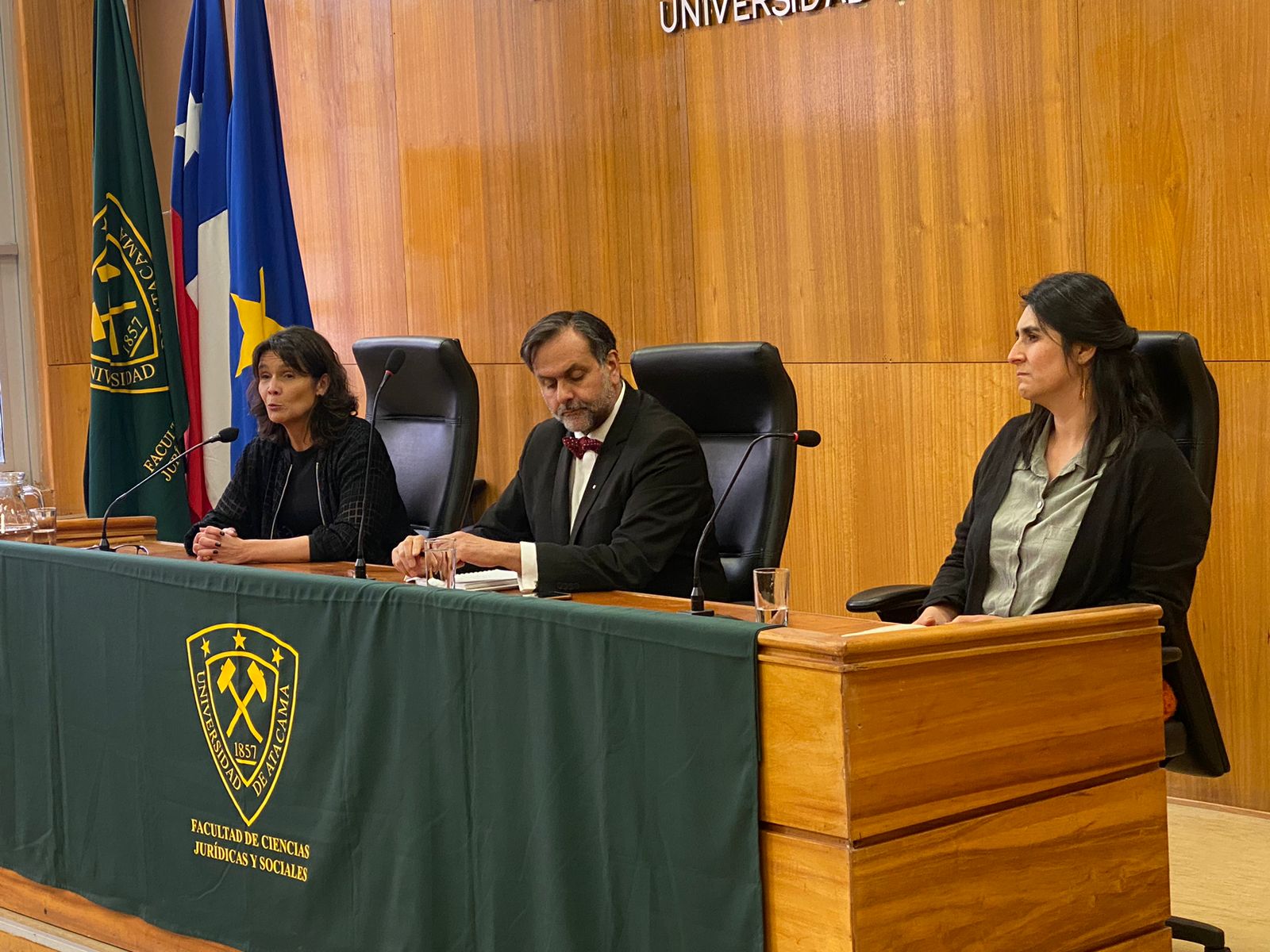 Las expertas compartieron sus visiones sobre el ejercicio de la democracia y la vinculación con los derechos fundamentales en un evento que reunió a una diversa audiencia en el Salón de Juicio Oral, dentro de las que destaca la participación de Rodrigo Cardozo Pozo, decano de la Facultad de Ciencias Jurídicas y Sociales; Mario Maturana Claro, director del Centro de Gobernanza, Políticas y Gestión Pública; Daniela Rojas Escobar, directora secretaria del colegio Abogados de Atacama; estudiantes y sociedad civil.