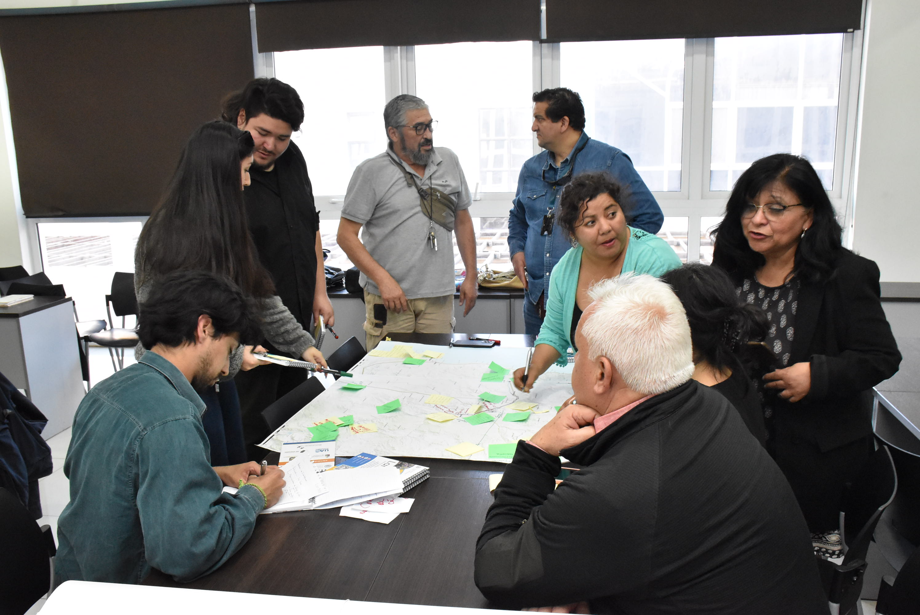 Durante la jornada, las y los participantes trabajaron en distintas mesas, utilizando un mapa impreso de referencia que abarcaba el triángulo de Caldera-Copiapó y la cuenca del río Copiapó. Los representantes de la comunidad marcaron y explicaron puntos de interés relevantes, asociando estos lugares con los procesos sociales que caracterizan su territorio. Posteriormente, se realizó una sesión plenaria donde cada mesa presentó sus hallazgos, consensuando los puntos de interés y argumentando su relevancia desde diversas perspectivas.