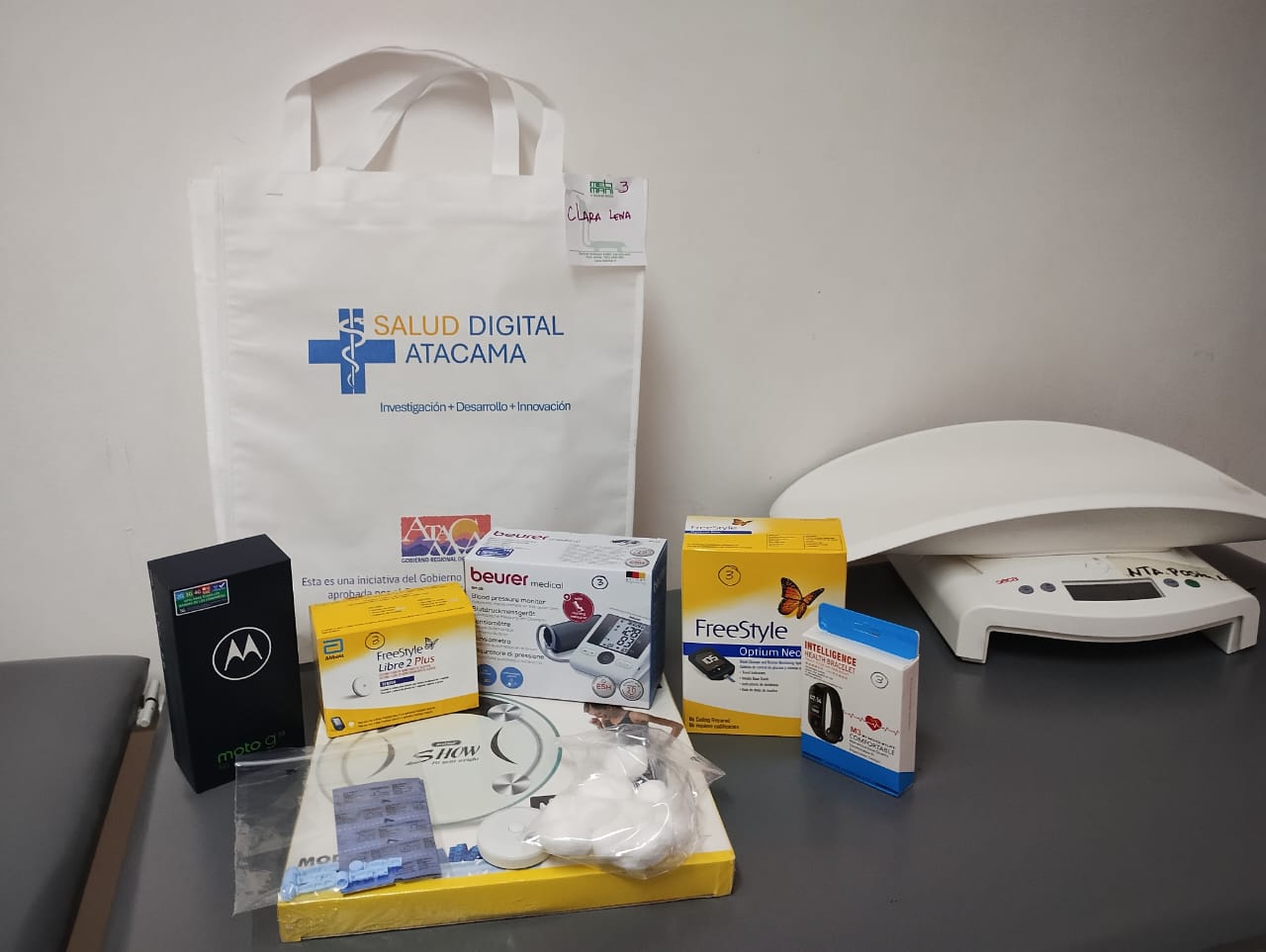 La directora del proyecto Salud Digital Atacama, María Paola Vieytes, detalló que “los equipos de auto monitoreo entregados incluyen un smartwatch, sensores de glicemia continua, glucómetros digitales y tiras reactivas, tomador de presión portátil y un smartphone con lector NFC, por un monto superior a los 350 mil pesos por cada kit, adquirido en un esfuerzo articulado entre los recursos del Gobierno Regional y las empresas proveedoras de servicios de conectividad que colaboran con la iniciativa”.