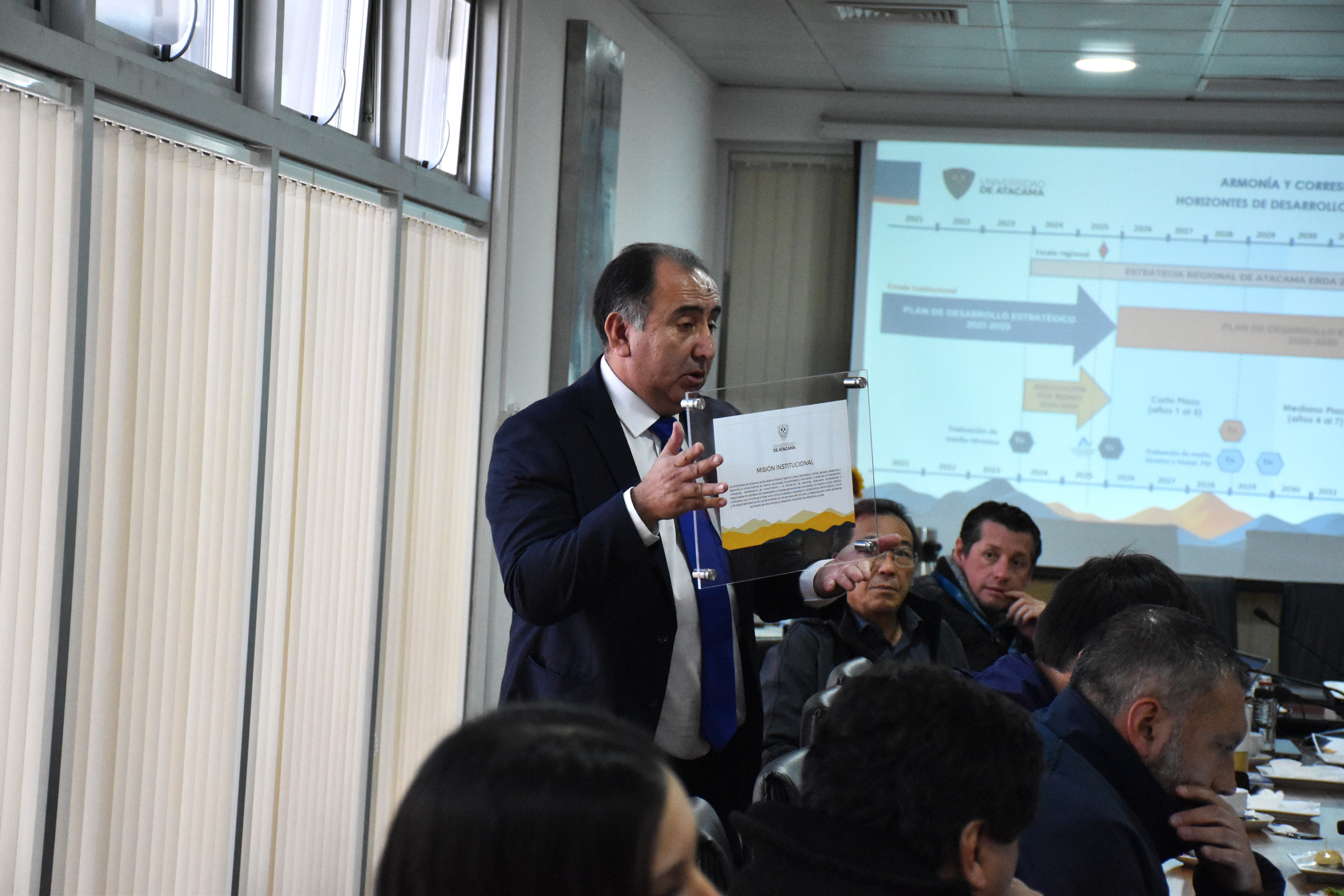 Durante la primera reunión, el director de Desarrollo Institucional, presentó los pasos a seguir durante este año, trabajo que esperan concluir en diciembre 2025. La instancia estuvo conformada por las distintas direcciones superiores de nuestra casa de estudios, contando con la participación de decanaturas, funcionarios, estudiantes de pre y postgrado, y nuestra máxima autoridad, el rector Forlín Aguilera Olivares.