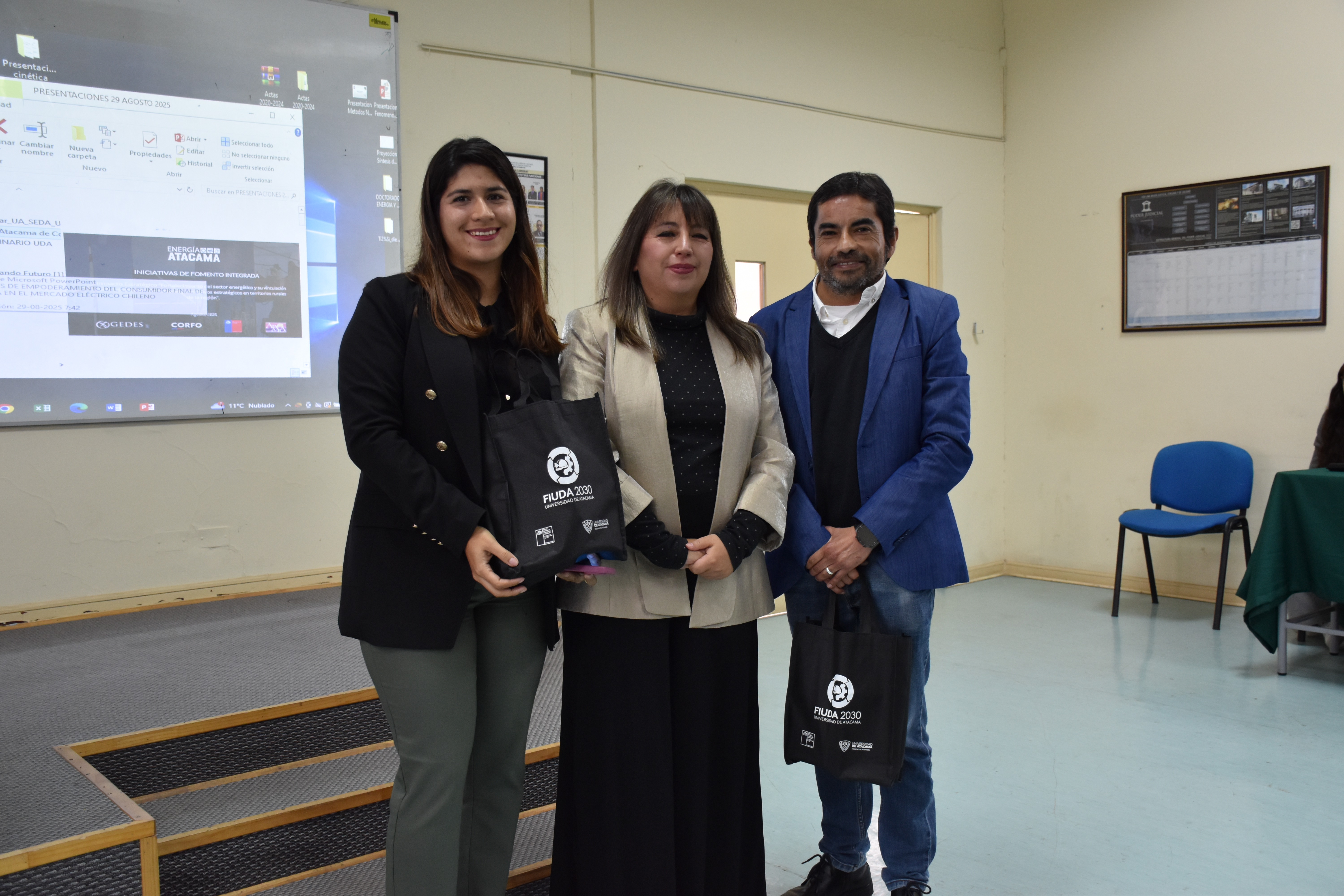 La jornada, inaugurada por la Vicerrectora María José Gallardo en representación del Rector Forlin Aguilera Olivares, evidenció el rol protagónico que está asumiendo la UDA en el fortalecimiento de capacidades científicas y tecnológicas para una transición energética justa, con foco en el aprovechamiento sustentable de los abundantes recursos renovables de la región, como la energía solar, eólica e hídrica.