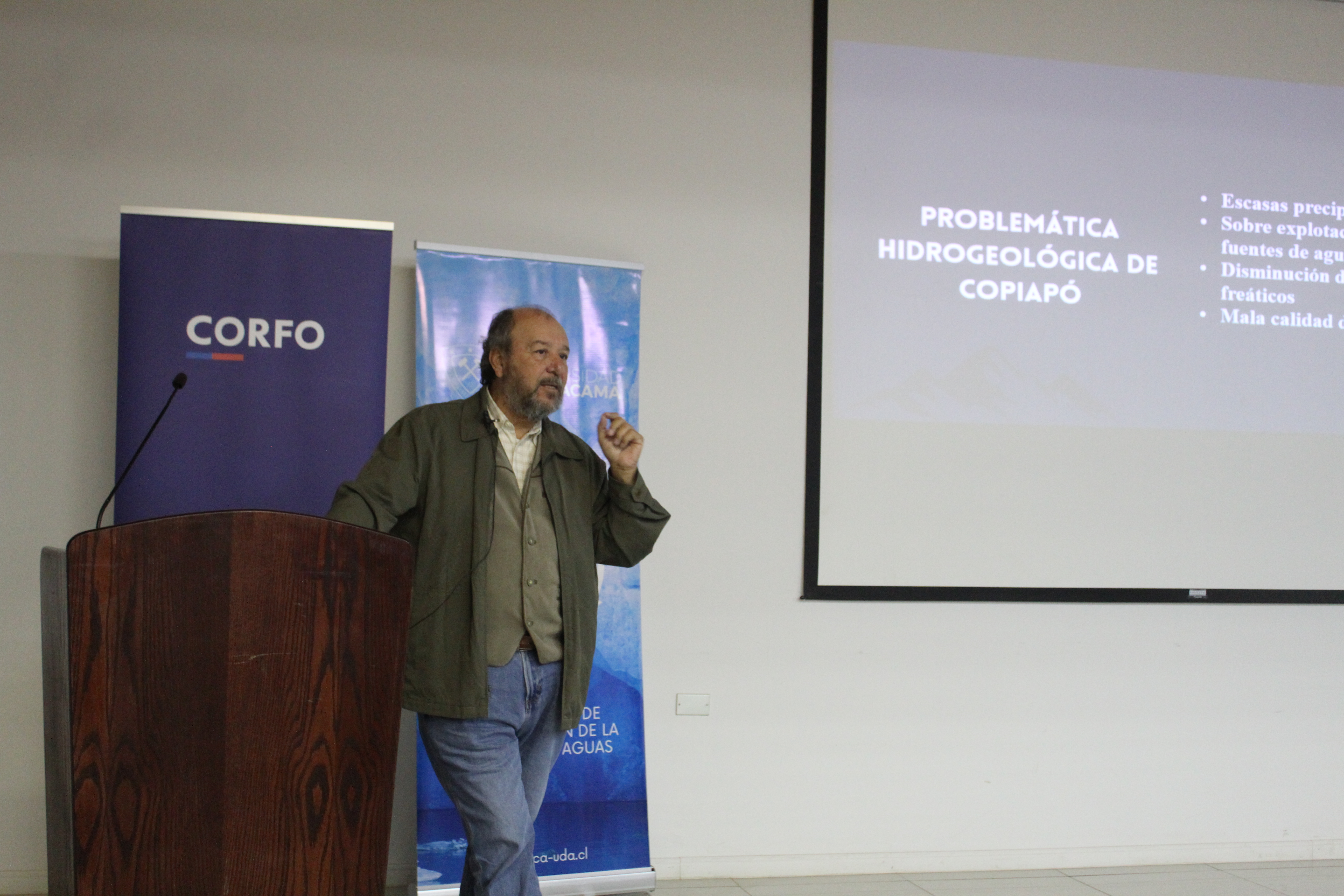 Diversos representantes de servicios públicos, empresas regionales y de la academia, participaron en el seminario «Desafío Gestión Hídrica: conocimiento y herramientas desde la Universidad de Atacama», actividad donde se llevó a cabo el lanzamiento del proyecto «Actualización de parámetros hidrogeológicos para la gestión sostenible del agua subterránea en Copiapó», como parte de la línea de Bienes Públicos de Corfo, el cual cuenta con el apoyo del Programa de Desarrollo Productivo Sostenible (DPS) del Ministerio de Economía.